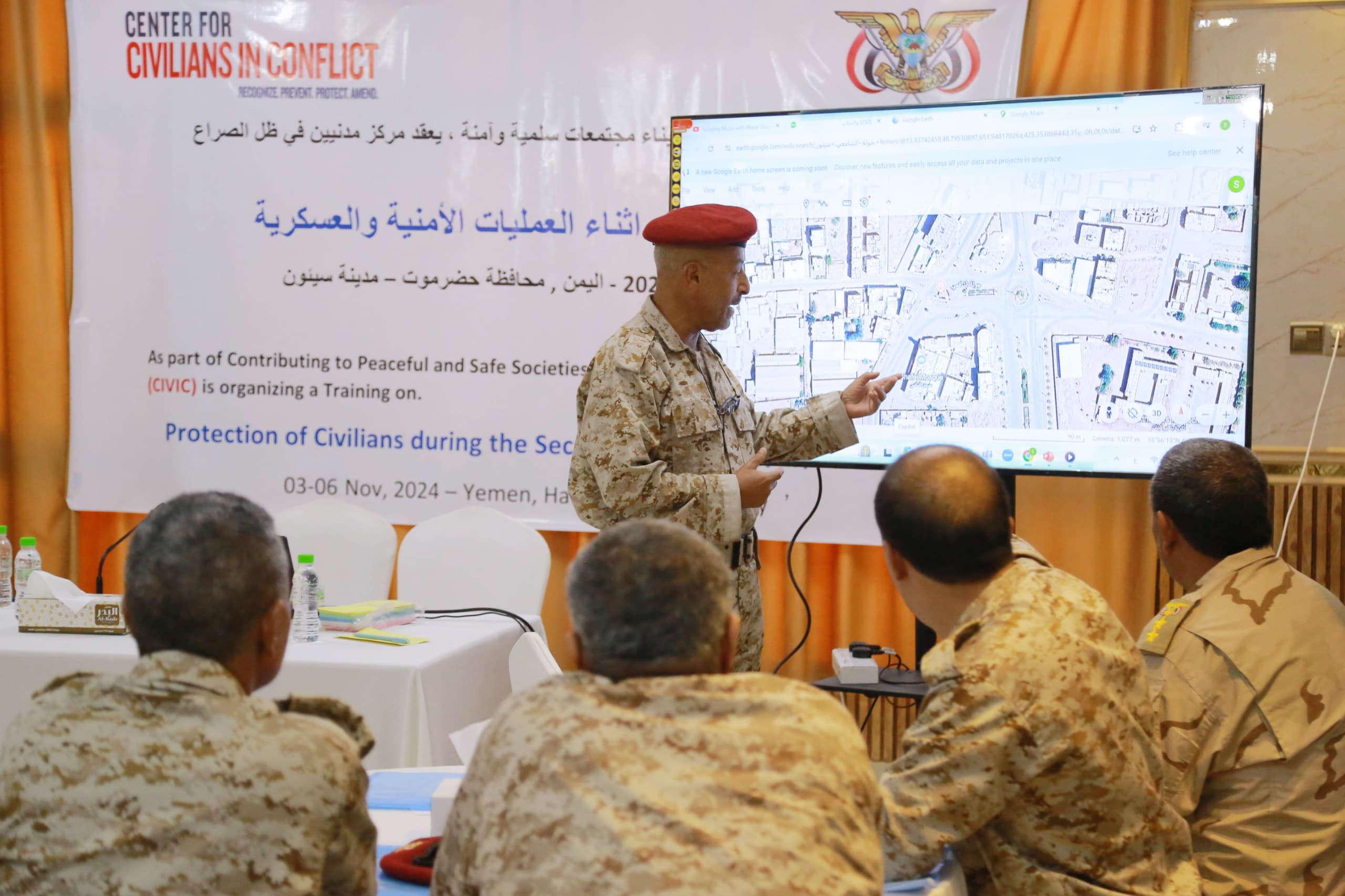 In 2024, over 287 military personnel participated in CIVIC’s training and awareness workshops on the Protection of Civilians (POC) and Civilian Harm Mitigation (CHM) across Aden, Marib, Taiz, Westcoast, Hadramout, and Shabwa.